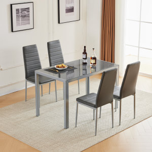 4人座 简约长方形 圆柱腿 餐桌 钢化玻璃不锈钢 清玻 110*70*75cm N201(替换编码13029115)