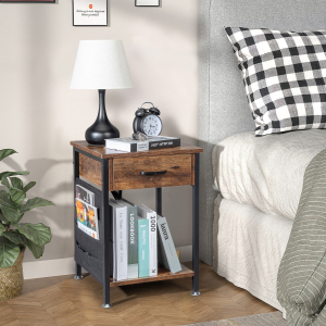 黑色 刨花板贴三胺 40*35*65cm 三抽 床头柜 带插口 带LED灯