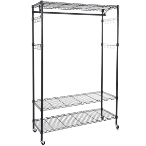 Wire Garment Rack Heavy Duty Clothes Rack,Closet Organizer Metal Garment Rack Portable Clothes Hanger Home Shelf Fabric Drawers,Freestanding Closet Wardrobe,Black