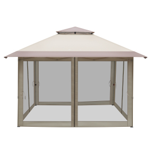 10*12ft 咖啡色立柱 铁皮顶棚 带4片卡其色拉链纱网帘 带4片卡其色拉链围布 长方形挑檐 双顶结构 铁艺凉亭
