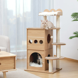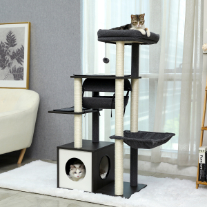 Luxury Cat Tree Cat Tower with Sisal Scratching Post, Cozy Condo, Top Perch, Hammock and Dangling Ball Grey (Minimum Retail Price for US: USD 99.99)