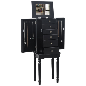 非全镜面木制挂墙式4层置物架2抽屉8个蓝光LED灯首饰收纳镜柜 - 白色