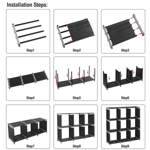 FCH 10抽6大4小 无纺布储物柜 阳离子布面+无纺布抽+刨花板+铁框 85*30*120cm 黑色木纹抽屉面 黑色布抽 黑柳木纹板