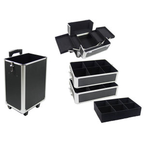 6-Layer Plastic Coated Polygonal Corner Shelf with 2" PP Wheels 680*680*1800 Black