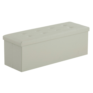31.5 Inches 80*41*42cm Linen With Storage Copper Nails Bedside Stool Footstool Off-White